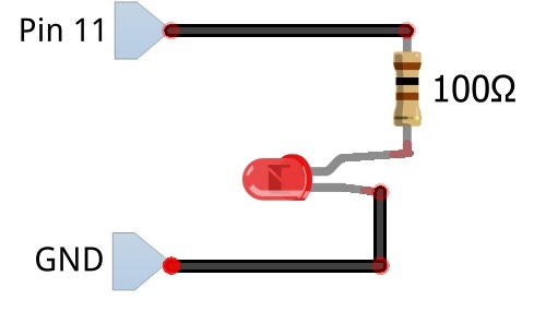 In this exercise you will create a circuit consisting of an LED and a resistor connected to the RPi. You will then periodically blink the LED using the example program provided to you in the starter code.